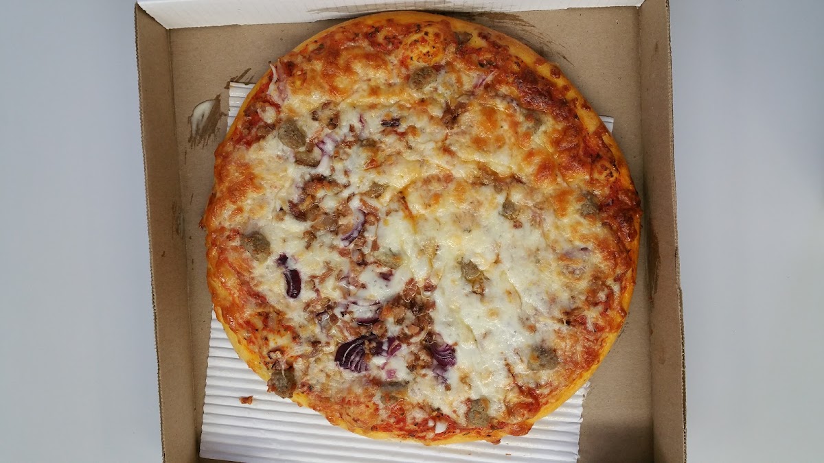 Just finished a large pizza..... it was very tasty. The cheese was thick. The pepperonis had a little crisp around the edges and cooked to perfection. I’ll definitely go back again.
